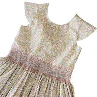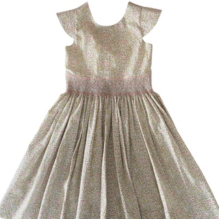 In sizes 3 to 8 - a more mature silhouette with the smocked panel across the waist, along with a classy scoop back and simple cap sleeves.